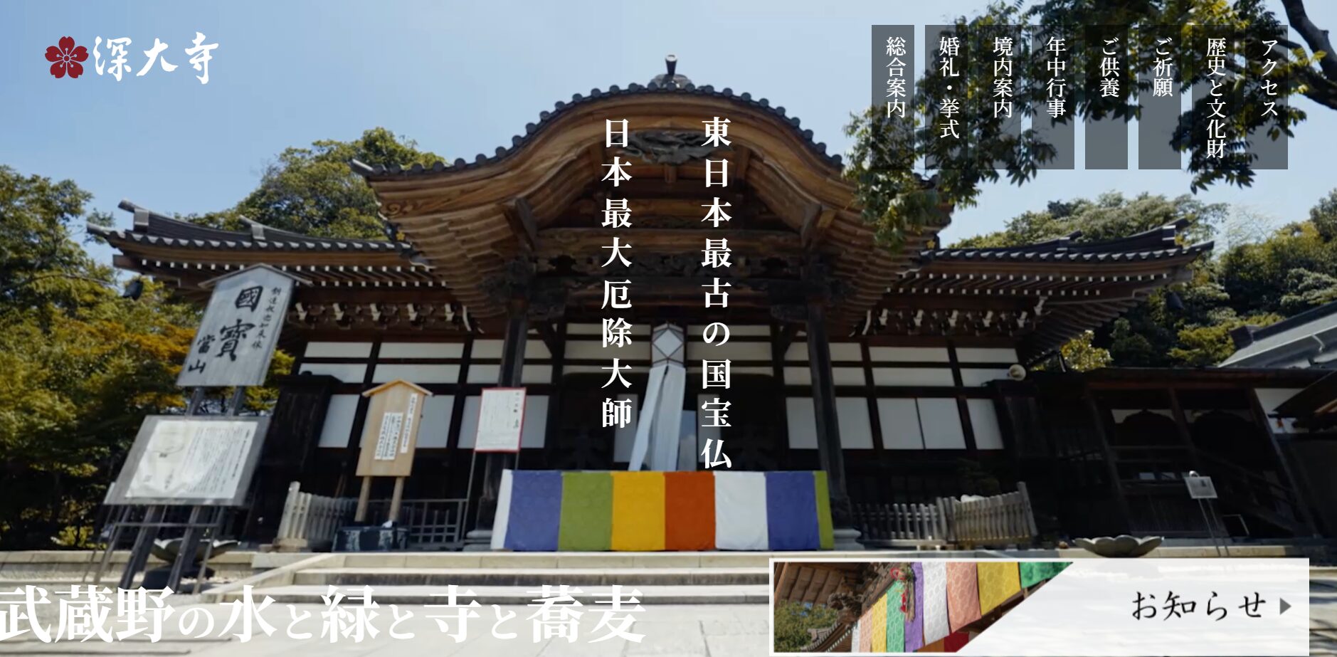 深大寺は、東京都調布市にある歴史あるお寺で、奈良時代に創建された由緒ある寺院です。周囲は豊かな自然に囲まれており、まるで都内とは思えない静けさと緑の美しさが広がります。春には桜、初夏には新緑、秋には紅葉と、季節ごとに異なる表情を楽しめるのも魅力のひとつです。