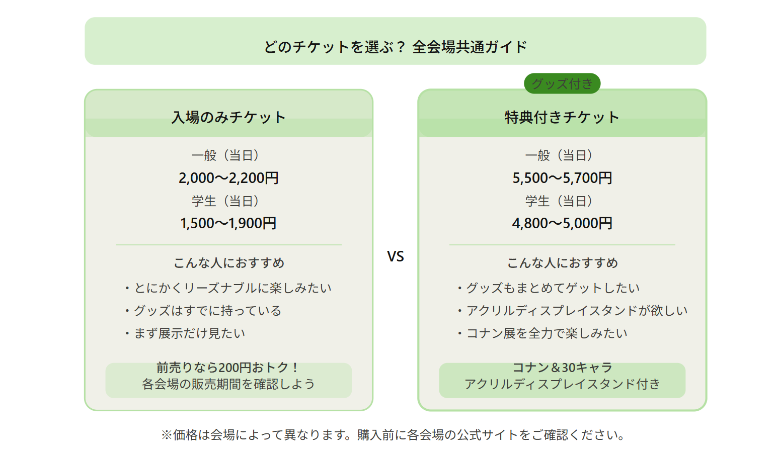 - チケットは公式プレイガイドで事前購入しておく(土日祝は混雑必至!東京会場は残りわずかです)
